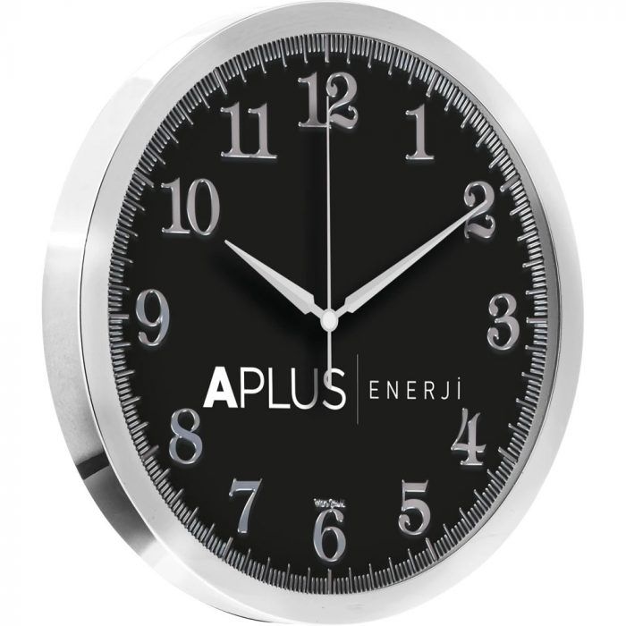 * Bristol Kadran, Gümüş Varak * Ebat: 25 cm * Çerçeve: Paslanmaz Metal * Saniye: Akar * Cam: Mineral * Baskı: Ofset, Dijital, Serigrafi, UV * Koli Adeti: 20